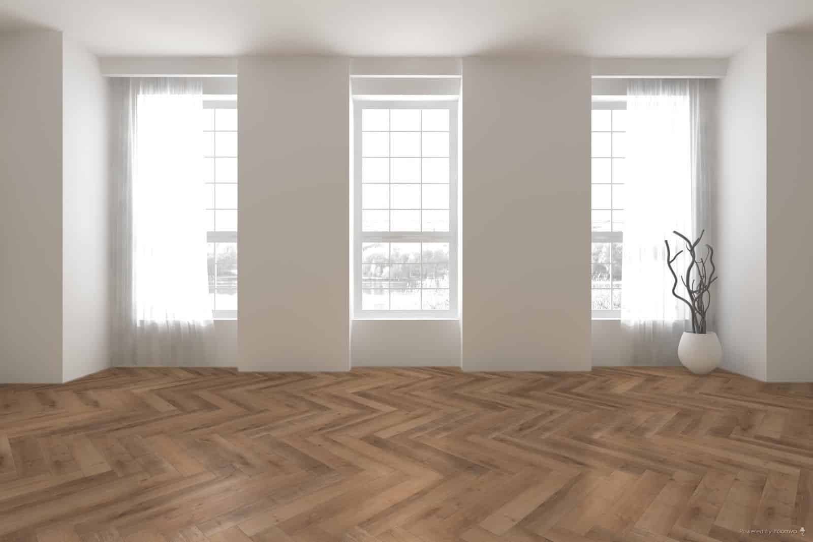 Weer een paradepaardje, Hoomline visgraat click laminaat, onze nieuwe variant laminaat in wel 6 kleuren! In vele interieurstijlen toepasbaar. Geschikt voor vloerverwarming en Aquaprotect. Water morsen? geen probleem, even dweilen en er is niks aan de hand.