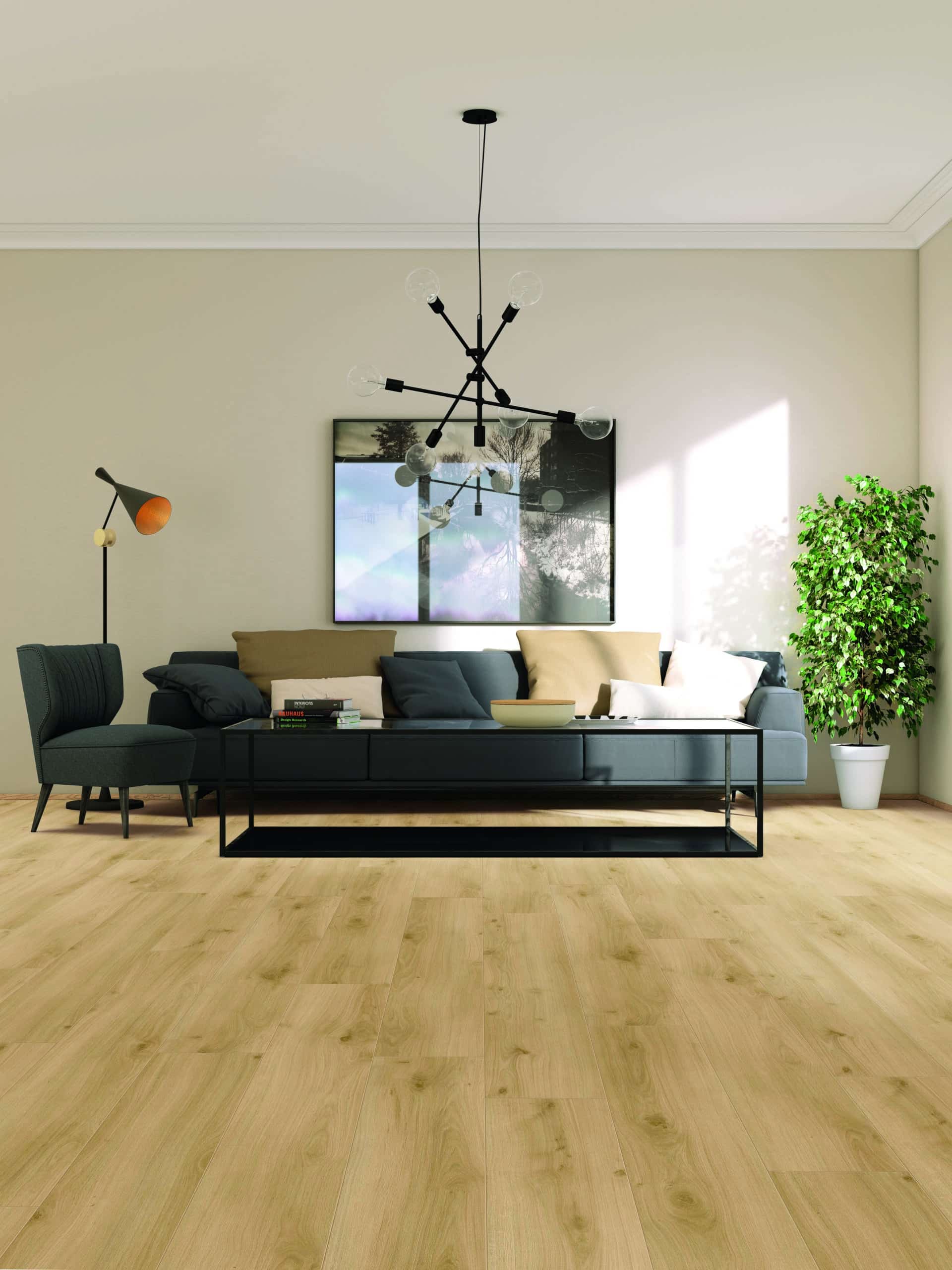 Optima heeft een natuurecht reliëf en natuurlijke kleuren. Is het hout, of is het laminaat? Je kunt het verschil bijna niet zien. Heel mooi: de matte finish. Dat geeft de vloer een rustiek, prachtig uiterlijk.