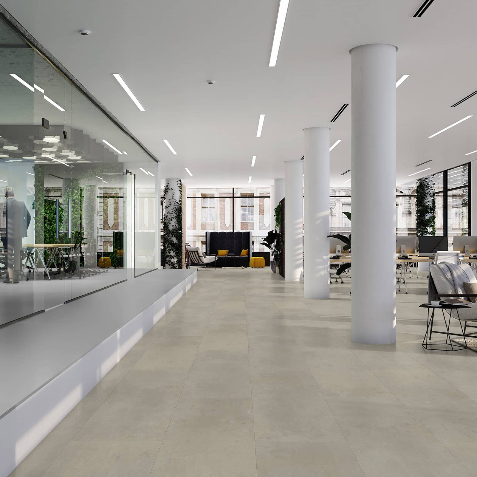 Vivafloors Tegel 1820 is een middelgrijze betonlook tegel. Rustig en industrieel! De tegels uit deze serie zijn egale betonlook tegels. Perfect voor een industrieel interieur.  Rustig maar toch stoer door de gekleurde velling!