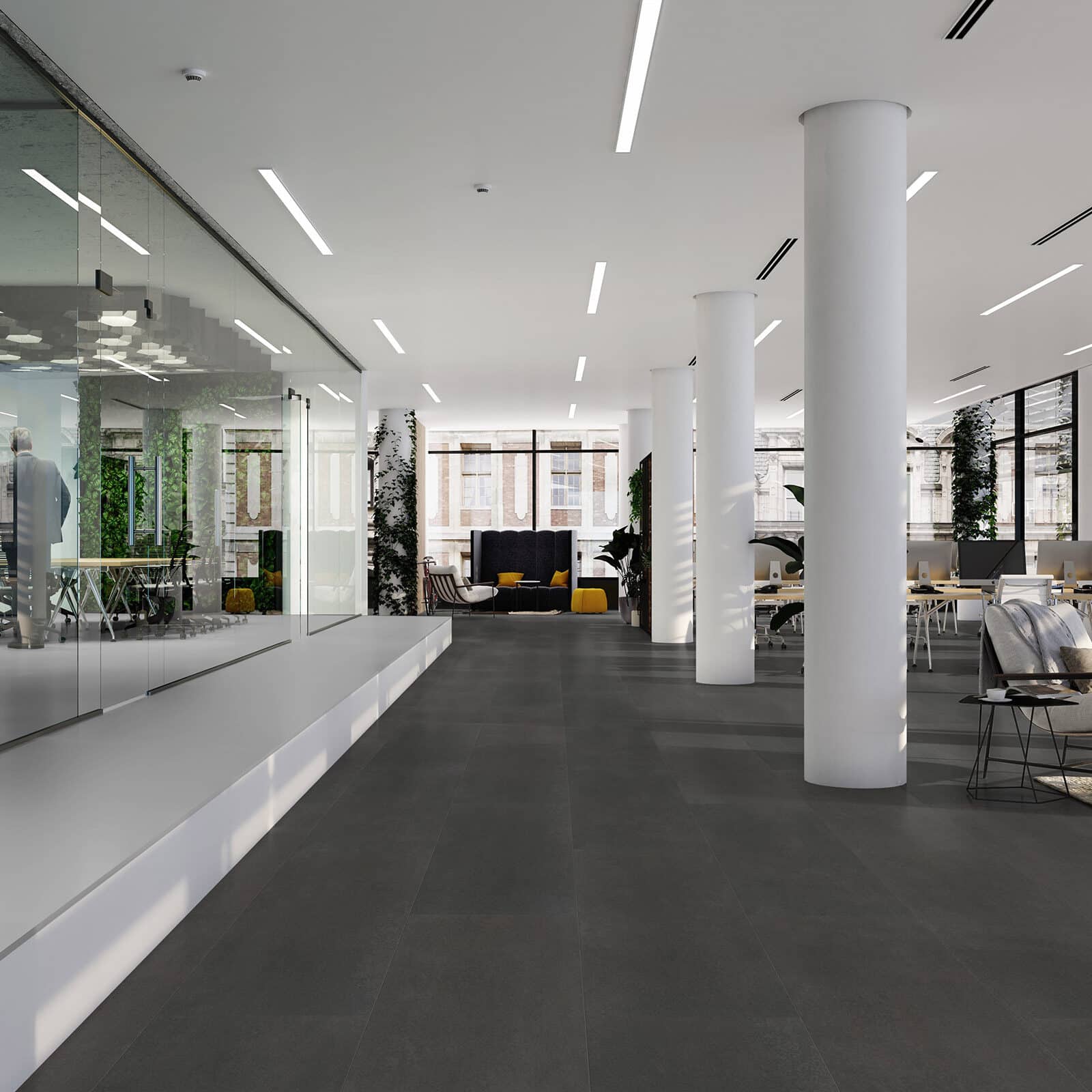 Vivafloors Tegel 1910 is een donkere, egale betonlook tegel. Modern en industrieel! De tegels uit deze serie hebben een vrij egale look en een minimalistische v-groef.